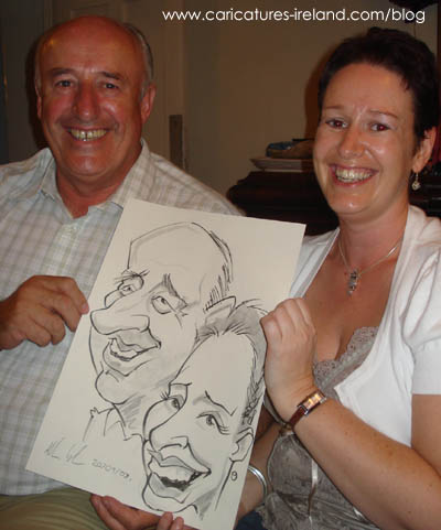 Here’s some of my caricatures from a surprise 60th birthday party I was entertaining at in Sligo. I was the aperitif before the guests sat down to dinner!