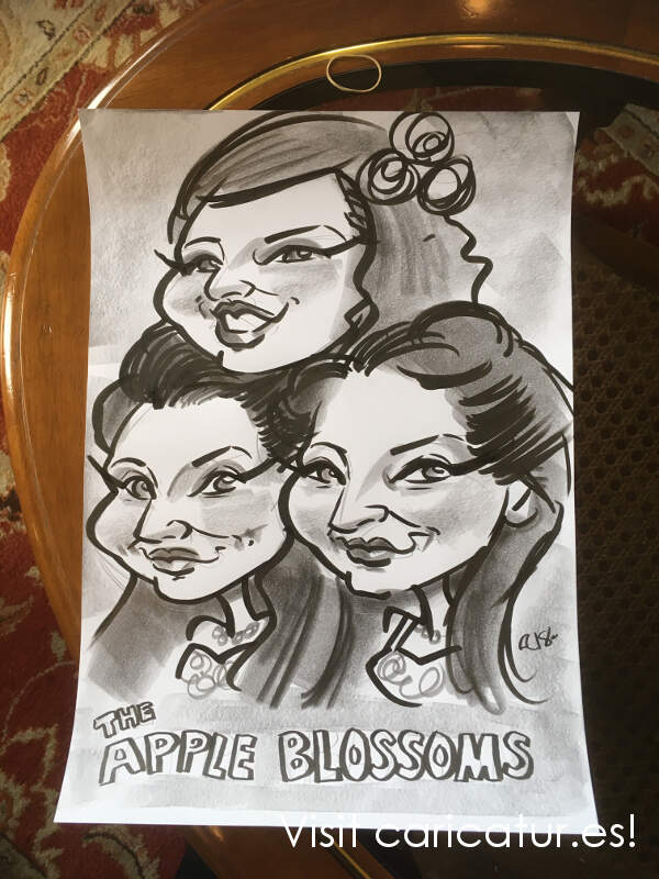 I also had the pleasure of working alongside singing trio The Apple Blossoms. Voices that genuinely make the hair on the back of your neck stand up and they really got the crowd going. We were in the same small room but we complemented each other very well! I took time to draw the ladies when I was finished and they were delighted with the result!
