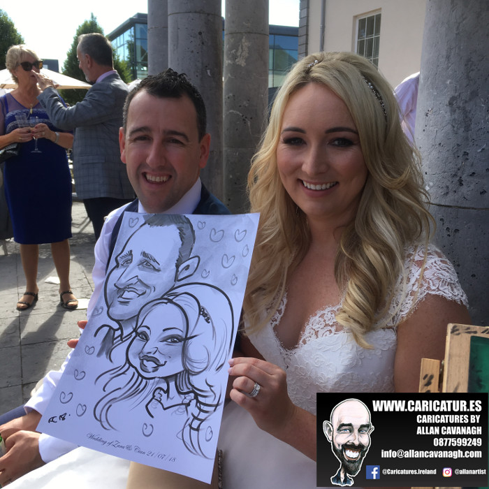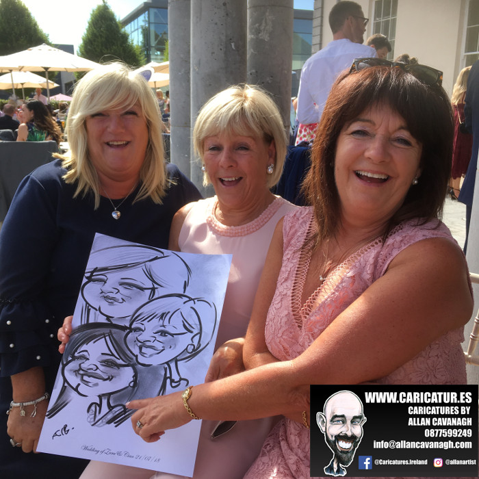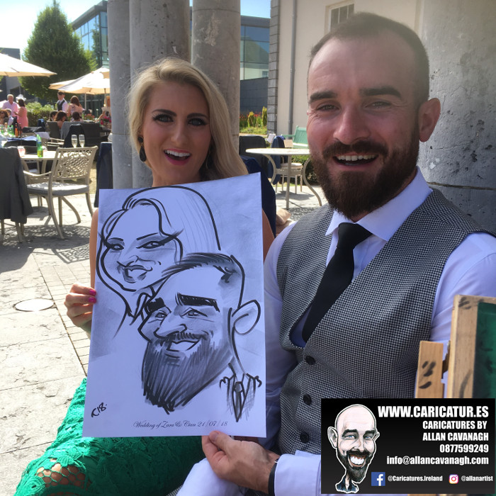 Cork Caricature Artist: here’s a bunch of caricatures from a wedding that took place in Castlemartyr Resort Cork on one of the hottest days of the year. One of the guests actually gave me a bottle of sunscreen! Lovely to be back in such an elegant venue with a great warm welcome every time. If you’re getting married in Cork and would like a caricature artist to give your guests an unforgettable start to your wedding please drop me a line!