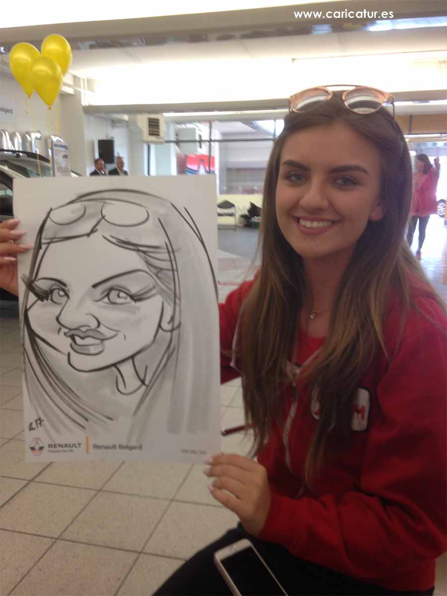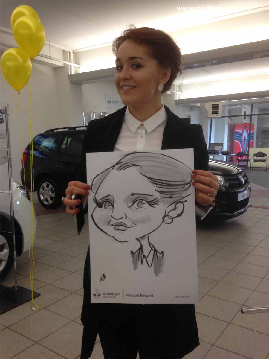 Here’s some live caricatures from Renault Belgard in Tallaght, where recent customers were able to enter a competition to win the price of their car back! My live caricatures are ideal for product launches, incentive events and promotional parties. Paper is printed with your logo, name and date of event. I’ll really ignite your event when your guests are roaring laughing!