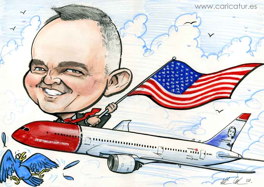 This was a gift caricature for the head of communications in Cork Airport to mark the first direct transatlantic flight from Cork Airport last month. It was a tight turnaround (this things usually are) but I got it there in plenty of time and the client was delighted. An historic day for Cork too, making it the first port of call for lots of tourists flying in from across the Atlantic. Maybe they’ll get to order a gift caricature from me while they’re here! If you’d like to order a gift caricature you can visit my Caricature Gift Order page.