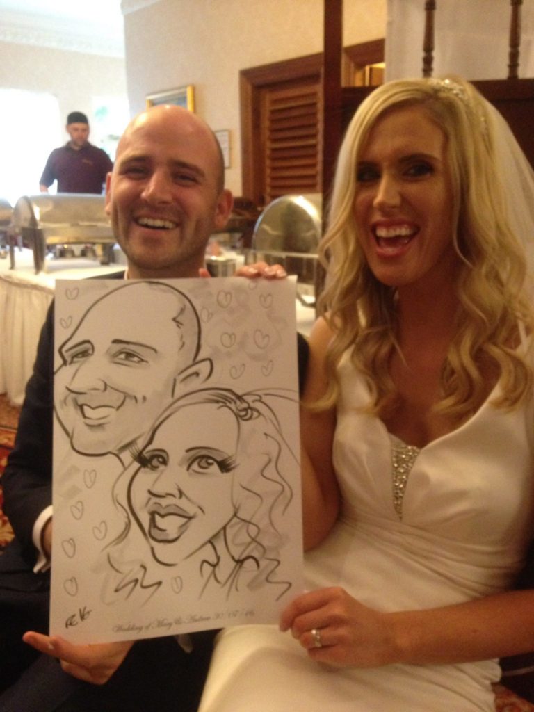 Other venues I’ve brought my unusual wedding act to include the G Hotel, Brigit’s Garden, Raheen Woods Hotel, the Salthill Hotel, the Shearwater Hotel Ballinasloe, the Cashel House Hotel near Roundstone, the Lady Gregory Hotel in Gort, and Cloghan Castle near Loughrea. You can see some of these posts go back a good few years! My most up-to-date work can always be found on my Caricature Artist Blog.