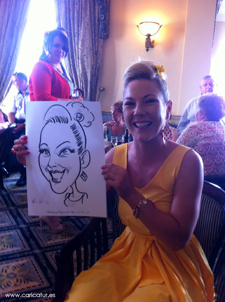 Wedding guest caricature in the Glenlo Abbey Hotel, Bushypark, Galway!