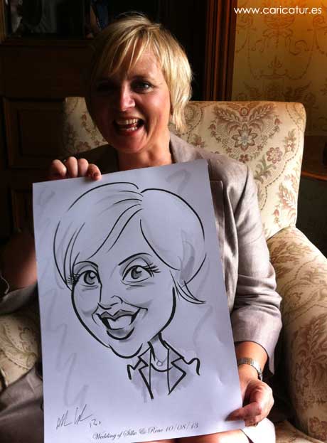 A wedding guest with her Allan Cavanagh Caricature in the Claregalway Hotel at a recent wedding! See a selection of live caricature art here!