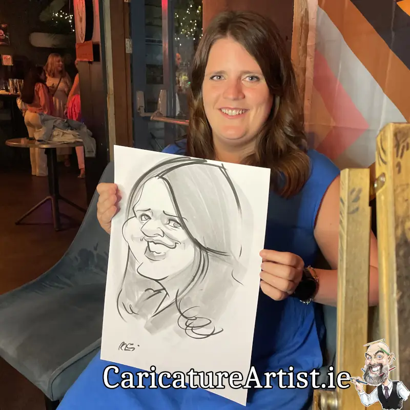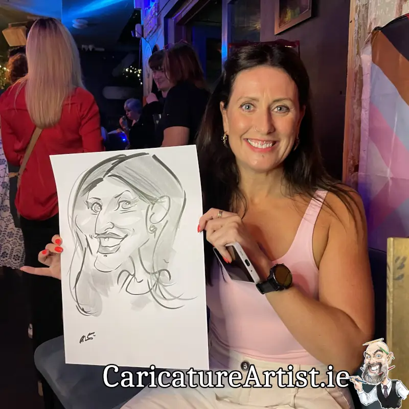 Staff Party Entertainment Cork: Last week I was in Wildes in Cork for this staff summer party. Great venue with lovely staff. I was kept going all night as you can see from the gallery below. Some fantastic laughs from my sitters! I also bumped into top Cork DJ Stevie Grainger who I’ve worked with in my nightclub past (I used to be a stiltwalker in a former life!) who was there to entertain the masses! Each caricature you see below took just 3 minutes. During the year I do family fun days, staff parties, staff barbeques, and staff Christmas parties for companies all over Ireland. It’s so much fun and adds a memorable artist twist to the evening with lots of laughs to boot!