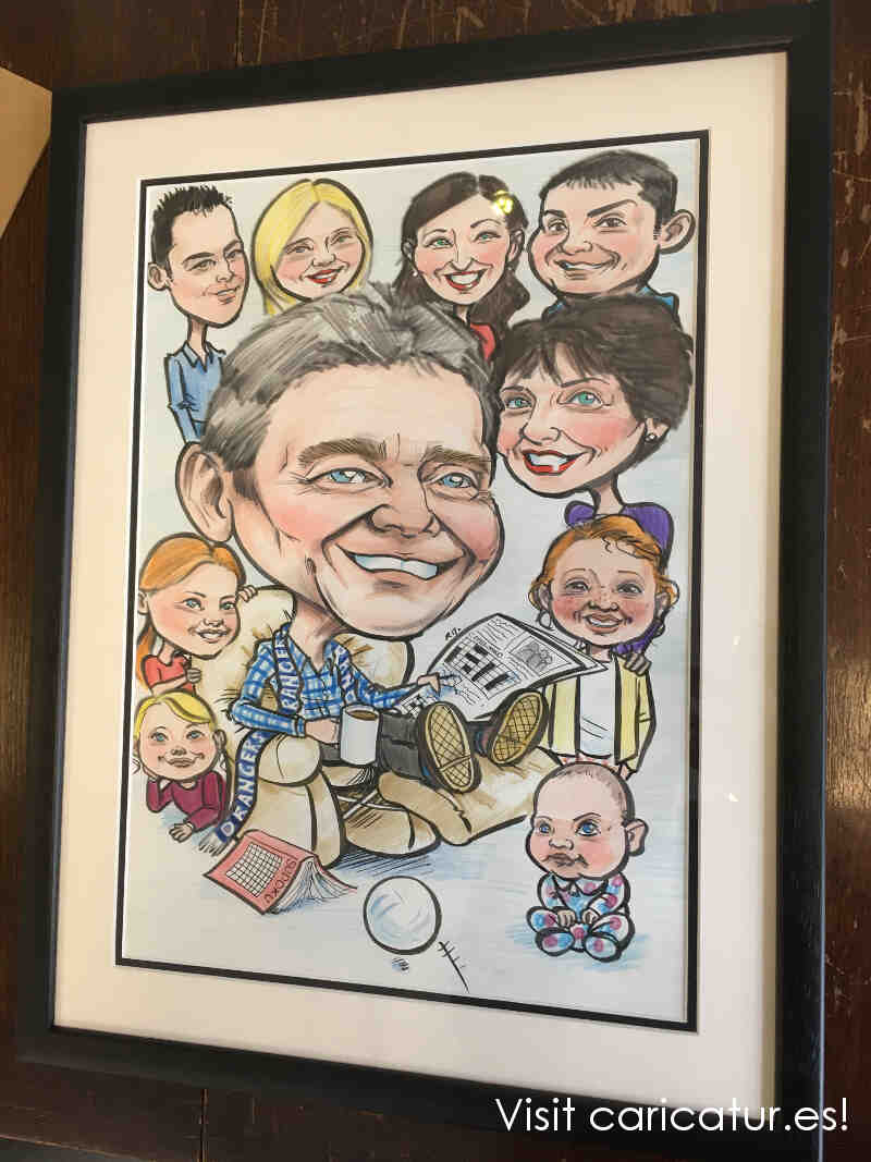 Allan did a caricature picture for my Dads 70th birthday of all the family and grand kids. Picture turned out brilliant and was a great surprise for my Dad who got a real kick out of it. Allan was easy to deal with and came up with an excellent caricature of my Dad the way I described. His imagination is great. Thanks Allan all the best for the future.
