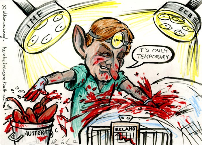 This Brian Cowen cartoon which featured in the Connacht Tribune in 2008 accompanying Charlie Adley’s Double Vision has been examined in a scholarly article.